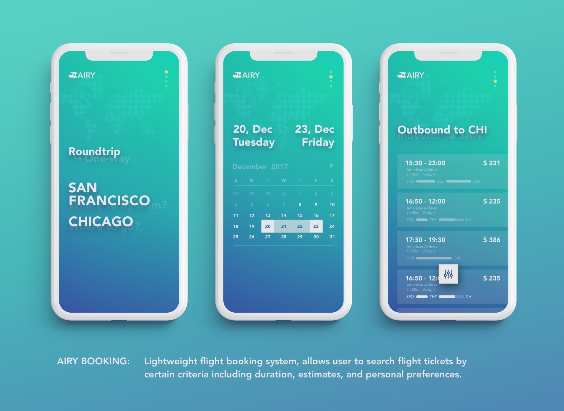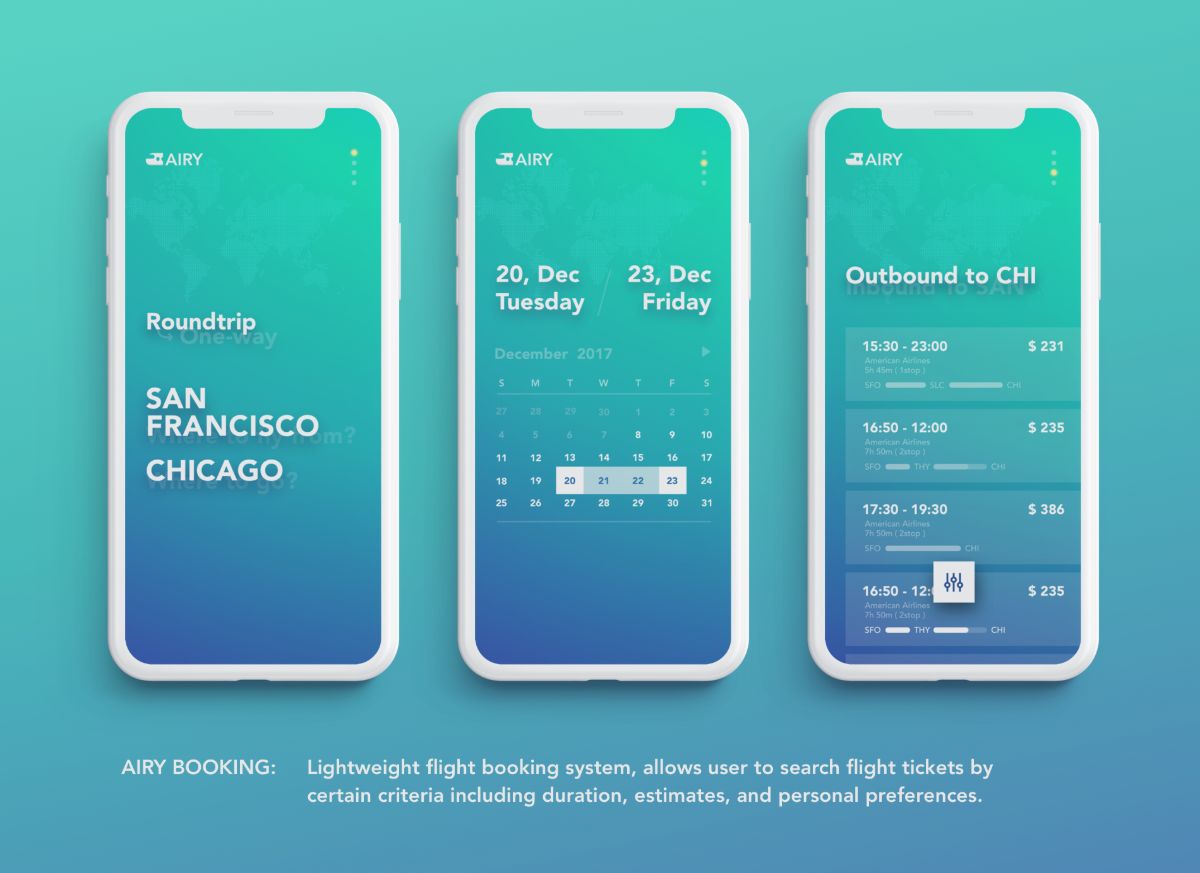 What makes Airy Booking unique is the deconstruction of the entire task flow and prioritization of the primary user flow while applying universal product design philosophies such as establishing a clear information hierarchy and minimizing every step. Through this project, I learned the importance of deconstructivism and prioritization in mobile application design. Special thanks to Jerome Tave's guidence, and all folks' feedback.